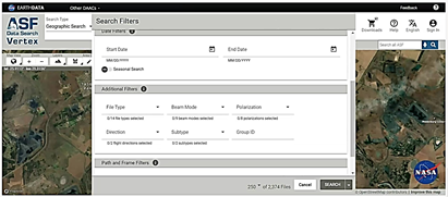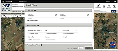 Vertex is the Alaska Satellite Facility's (ASF) data search program for remotely sensed Earth images, facilitating efficient discovery and download of SAR data, along with direct access to themed datasets [17]. ASF Data Search is a user-friendly tool for locating SAR data and efficiently processing advanced SAR products, including InSAR and Auto-RIFT products, utilizing ASF's HyP3 service [16]. The ASF DAAC provides three methods for data search and download: over the web using Vertex, programmatically through the Python Search Module/Mintpy, and through ASF's established Search Application Programming Interface. ASF is accessible via Earth Data Search.