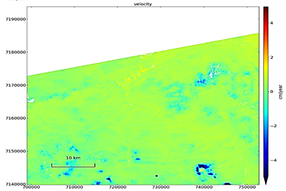 Interferometric synthetic aperture radar (InSAR) is a radar methodology employed in geodesy and remote sensing that utilizes two or more synthetic aperture radar (SAR) images to produce maps of surface deformation or digital elevation, based on variations in the phase of the waves returning to the satellite or aircraft. The approach has the capacity to quantify millimeter-scale variations in deformation throughout a temporal sequence [4]. It is utilized in geophysical monitoring of natural hazards such as earthquakes, volcanoes, and landslides, as well as in structural and geotechnical engineering for monitoring subsidence and structural integrity [9]. Civil engineering, mining, and infrastructure require great spatiotemporal accuracy, precision, and detail in observations and measurements [7]. Satellite-based remote sensing methods can generate data and information that meet these standards [10].