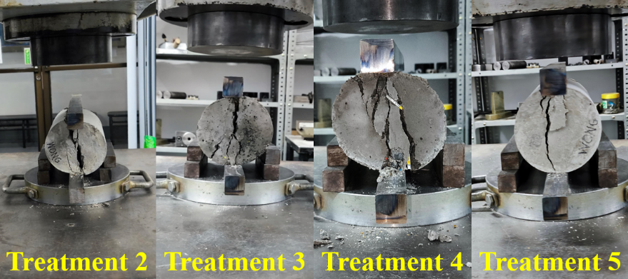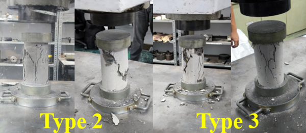 Meanwhile, for the split tensile strength test, the types of failure were classified as follows: