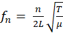 where fn is the natural frequency at vibration mode n, L is the cable length, T is the cable tension, and 𝜇 is the mass per unit length.