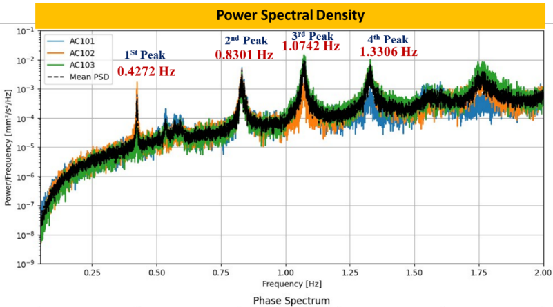 This classical relationship forms the theoretical foundation of vibration-based cable-tension identification techniques widely used in SHM [2], [3]. By measuring the fundamental frequency f1 from field vibration data typically obtained using accelerometers or Fiber Bragg Grating (FBG) sensors [21] the in-situ cable tension can be estimated indirectly without the need for load cells.