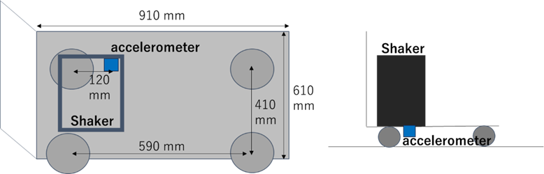 Table 1 summarizes the objectives and excitation methods used in each experimental series. In the first experimental series, the objective was to compare three excitation methods: shaker excitation (at position A in Figure 2), impact excitation (at position B-1 and B-2 in Figure 2), and ambient vibration measurement using constant microtremors. Accelerometers were placed at positions a and b as shown in Figure 2. The second series investigated amplitude dependency of vibration characteristics using the shaker placed at the same position as in the first series, with the excitation level was controlled over ten steps. The accelerometer was placed at position a in Figure 2. The third test examined temperature dependency of vibration characteristics by measuring constant microtremors over an extended period using sensors at positions a and b in Figure 2.