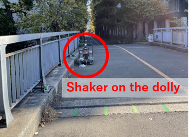 Firstly, the natural frequency of the dolly itself was evaluated to understand its vibration characteristics. Next, the shaker mounted on the moving dolly was used to excite the bridge while the dolly was in motion. By comparing the results with conventional stationary tests, the study evaluates the feasibility of this mobile method and proposes a new technique for identifying the natural frequencies of a target bridge during movement.