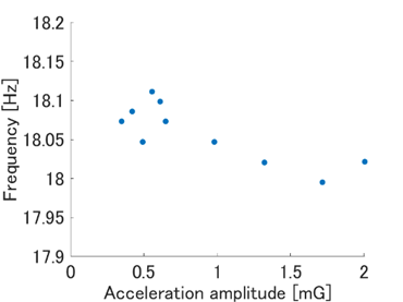 As shown in Figure 8, the natural frequency of the first torsional mode decreased with increasing acceleration amplitude. However, Figure 9, shows no clear correlation between the acceleration amplitude and the identified damping ratio. These observations, that frequency and damping do not exhibit the expected negative correlation under steady-state vibration, suggest that another factor is at play.